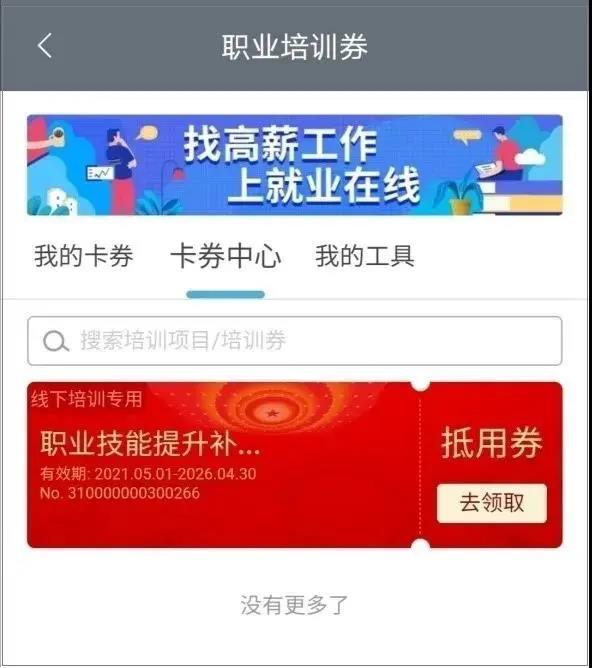 日前,上海市人力资源和社会保障局印发《关于全面推广职业培训券应用工作的通知》,在总结前期职业培训券试点工作的基础上,将依托职业培训信息管理系统,统一向有培训需求的各类劳动者发放职业培训券,全面推广职业培训券应用。计划2021年全市发放职业培训券50万张,2022年实现补贴性职业技能培训项目全覆盖。劳动者可通过上海人社APP、微信电子社保卡小程序、支付宝电子社保卡应用等电子社保卡应用程序客户端,查询领取职业培训券。