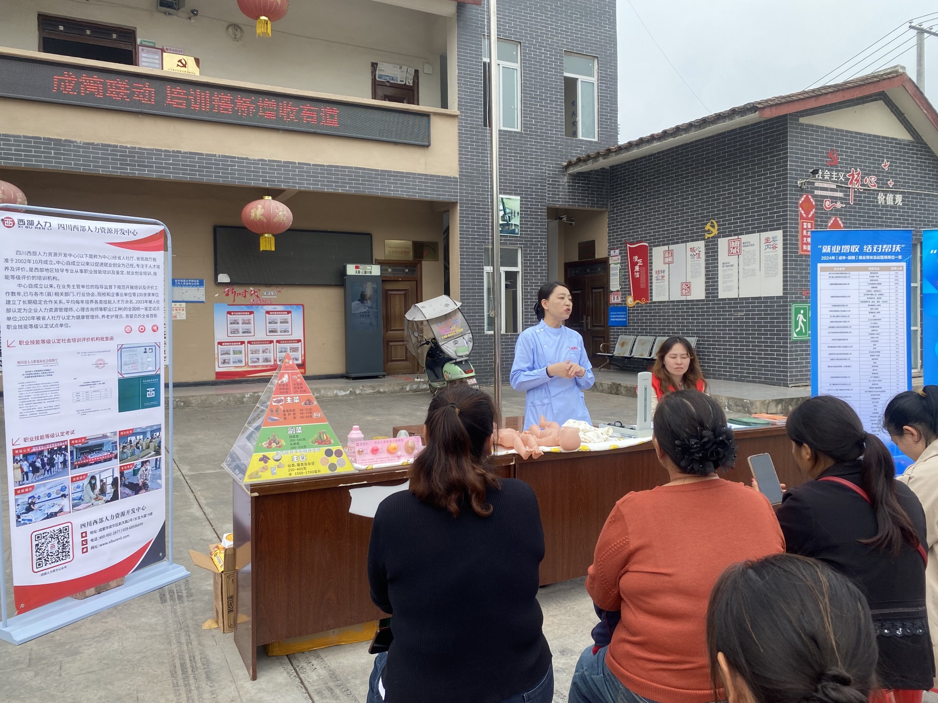 为扎实推进简阳市脱贫群众就业增收工作,促进当地求职者尽快就业创业,针对脱贫家庭劳动力的实际和培训需求,10月9日,由成华区人社局联合简阳市人社局发起,四川西部人力资源开发中心参与的“成都东部新区和简阳市就业增收结对帮扶工作”分别在简阳的杨家镇、雷家镇、赤水街道顺利开展,就老年及婴幼儿两大重点人群的照护技能进行现场讲解和一对一指导,旨在提升当地居民的职业素质,增强就业技能。