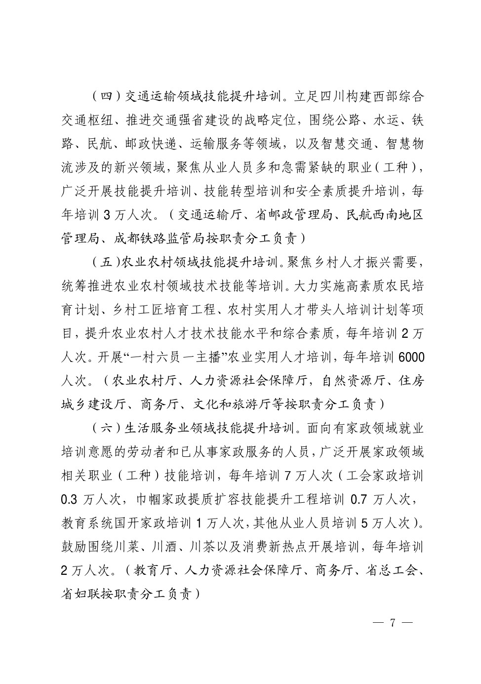 关于印发《四川省大规模职业技能提升培训行动方案(2025-2027年)》的通知