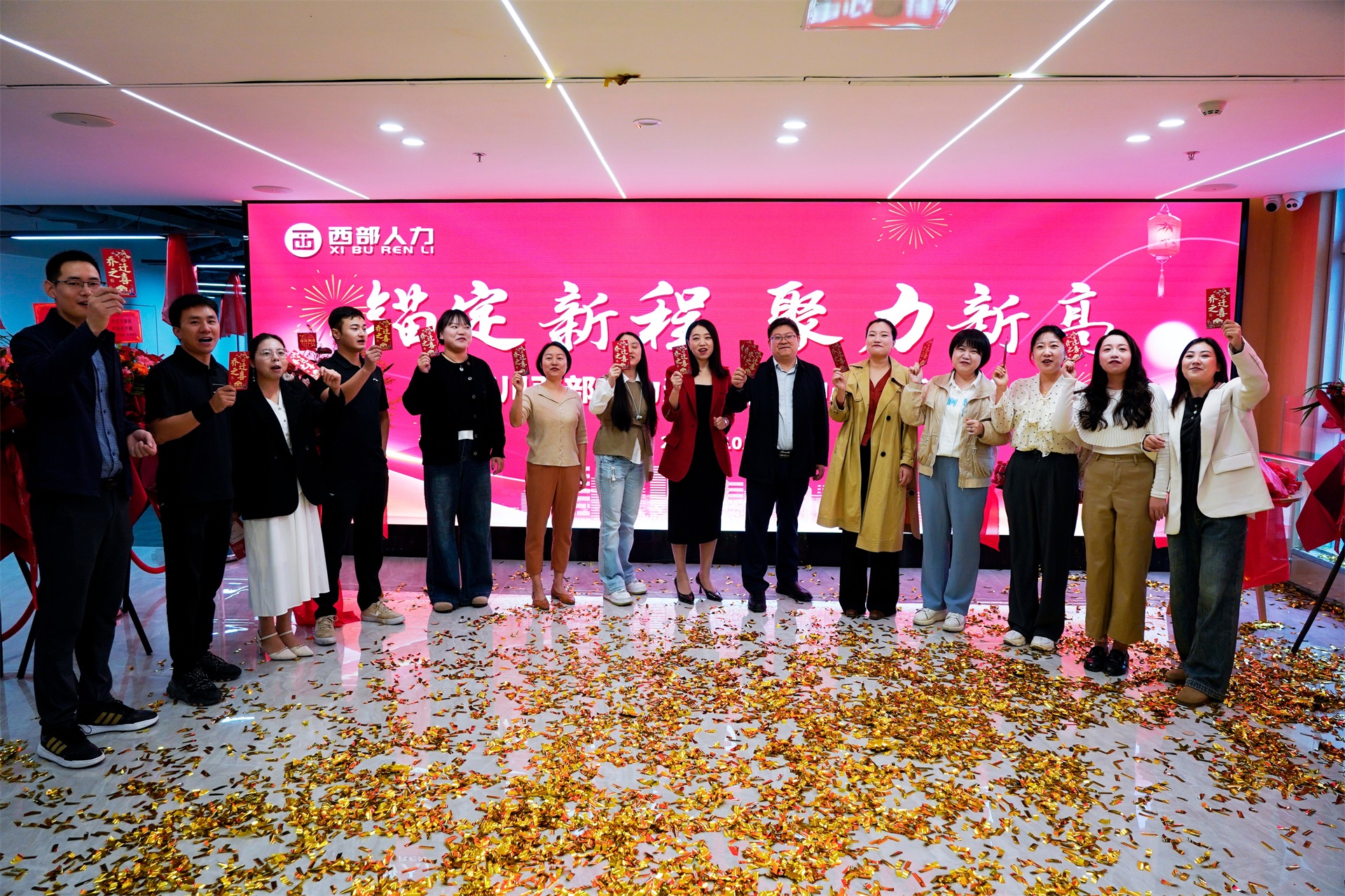 随后,职工们手持寓意吉祥的物品向单位送上祝福,温馨瞬间传递出团队的同心同德。紧接着,云峰主任向在场员工逐一派发吉祥红包,将关怀与好运送到每位员工手中。最后,全体人员在新大厅合影留念,灿烂的笑容定格了这一意义重大的时刻,乔迁仪式圆满结束。