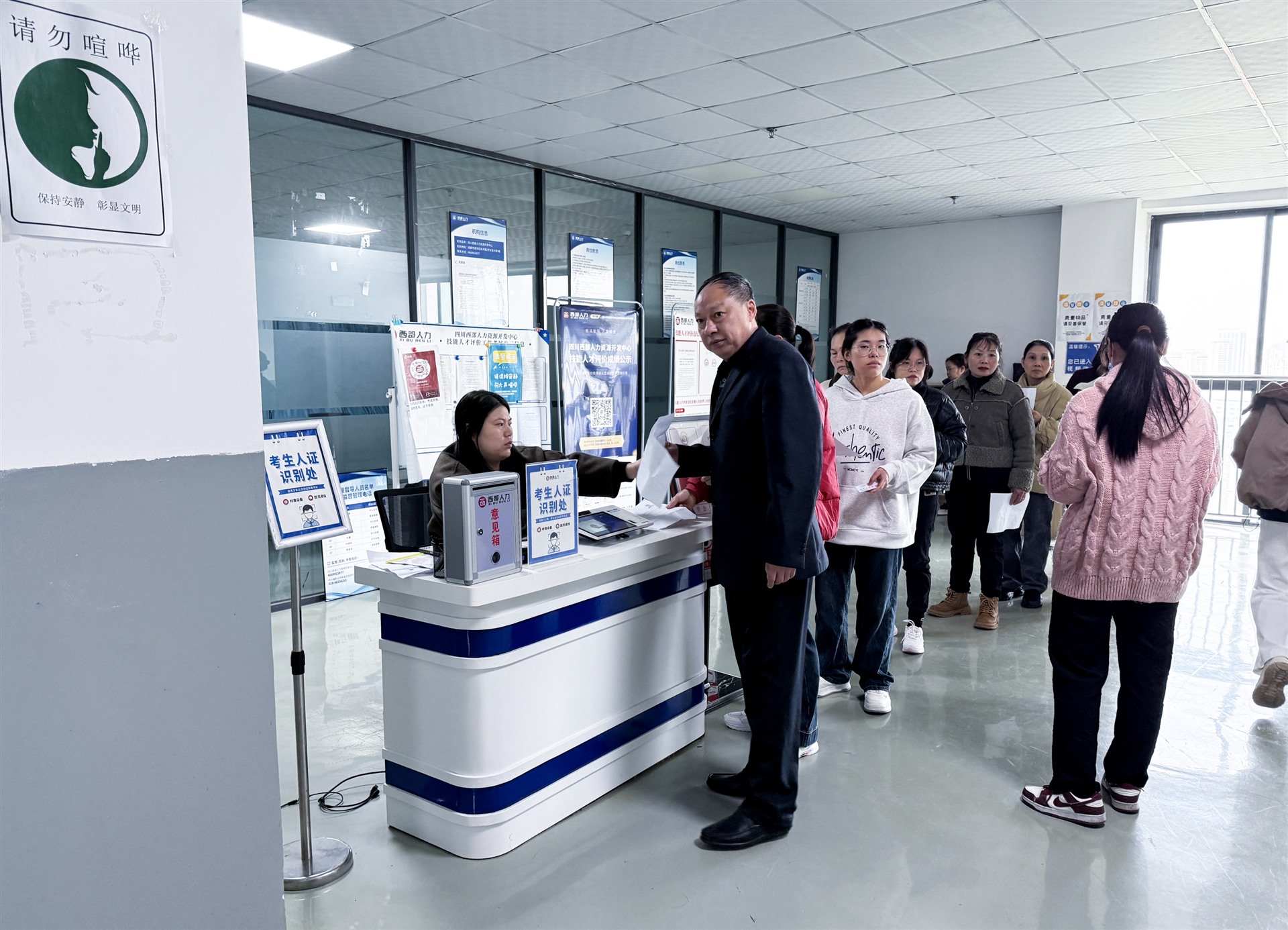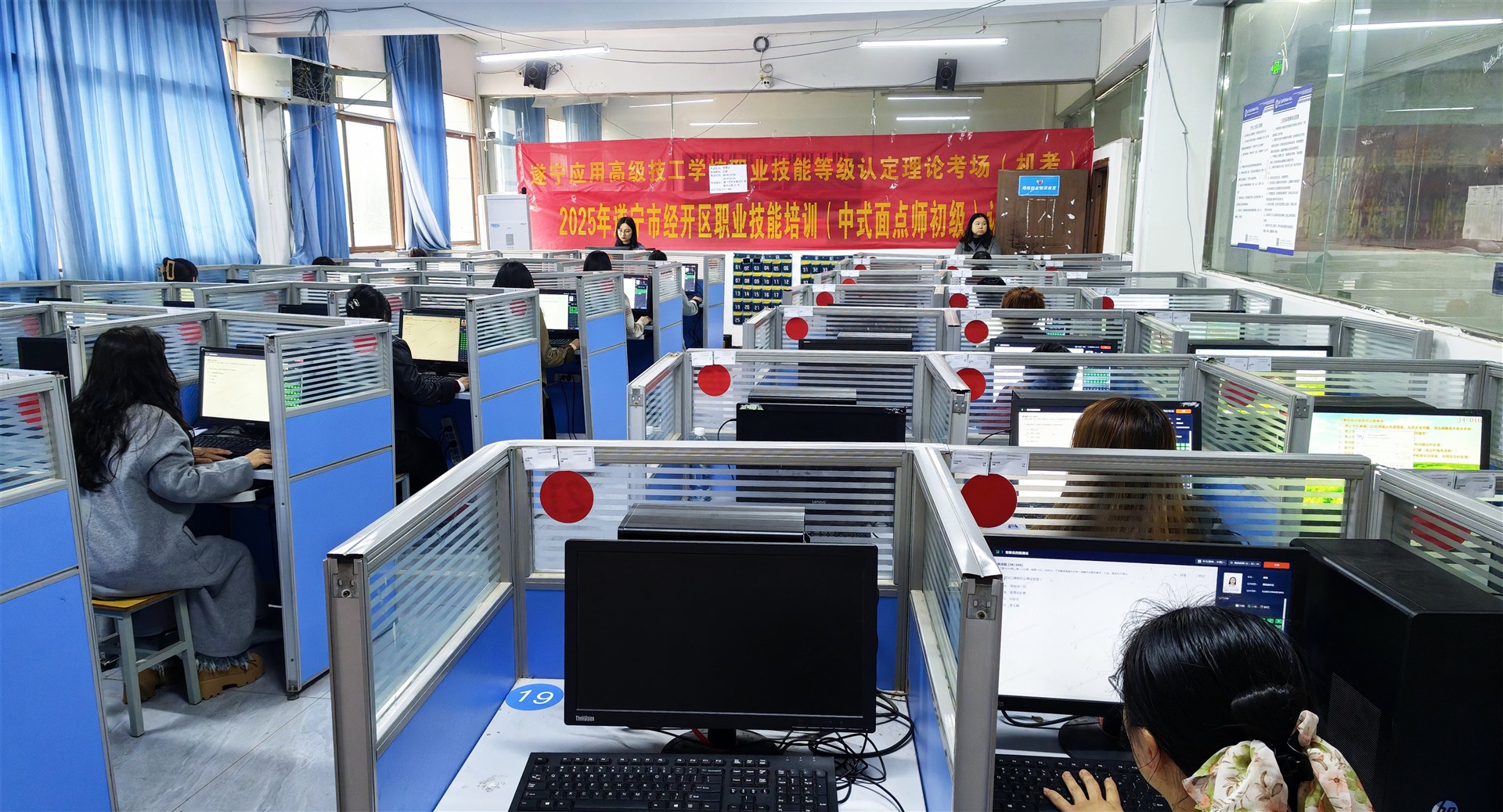 考试实施期间,各项工作均严格遵循相关规章制度,秉持评价工作无小事的原则。考点设置符合标准、规范且整洁;考务人员举止文明、礼貌待人;监考人员坚守岗位、认真履职;考评人员持证上岗,考评方式科学规范;质量督导员严谨客观,确保技能人才评价质量。全体工作人员各司其职、协同合作,为考生提供周到服务,并提前做好充分准备工作,确保考试有序进行,考试结果公平公正。