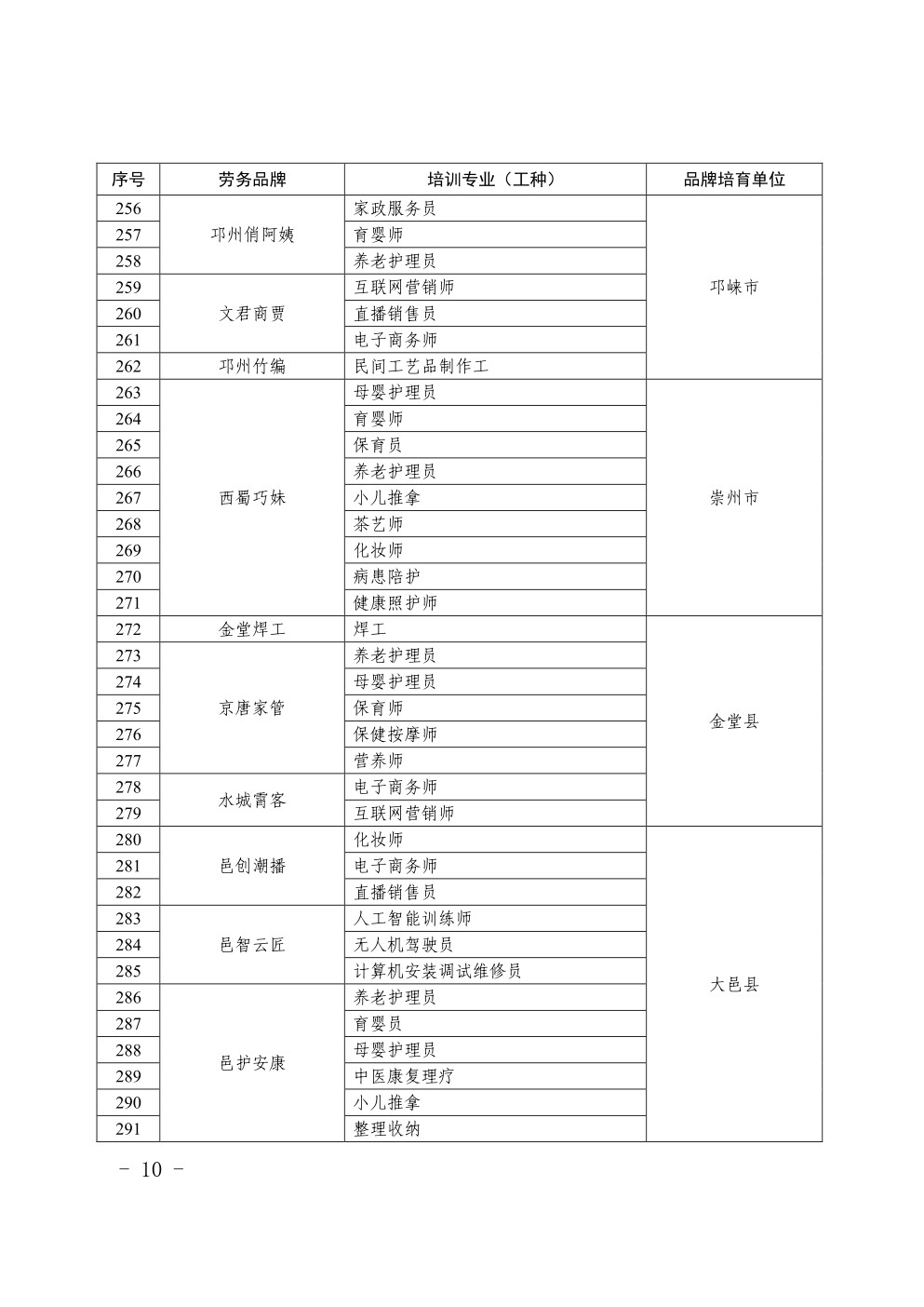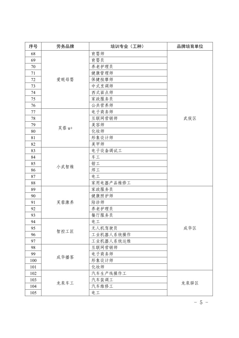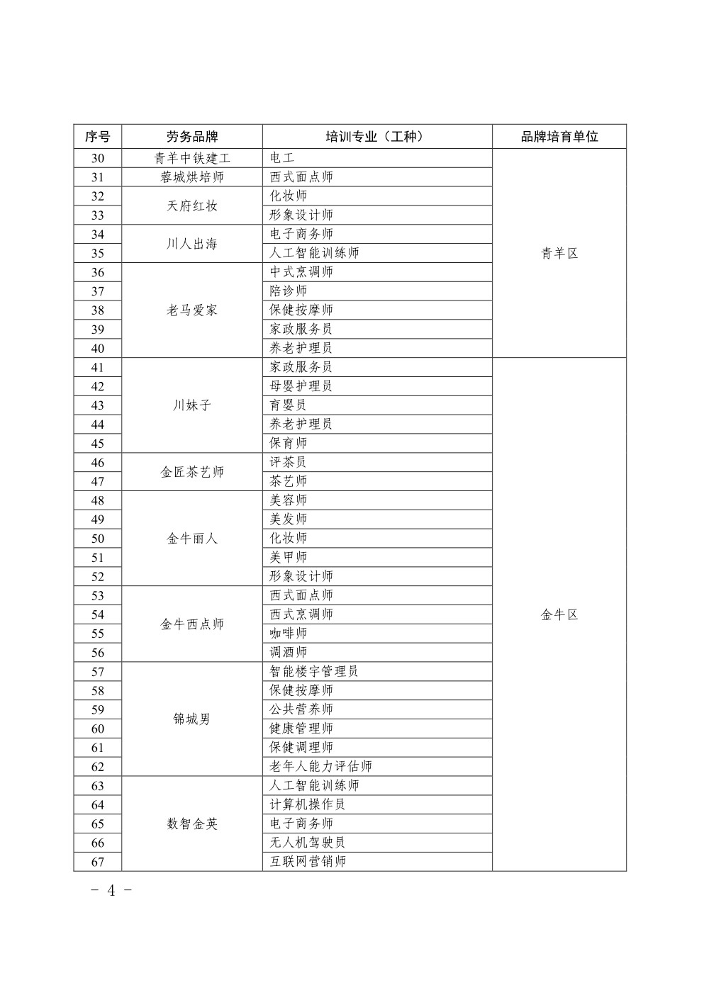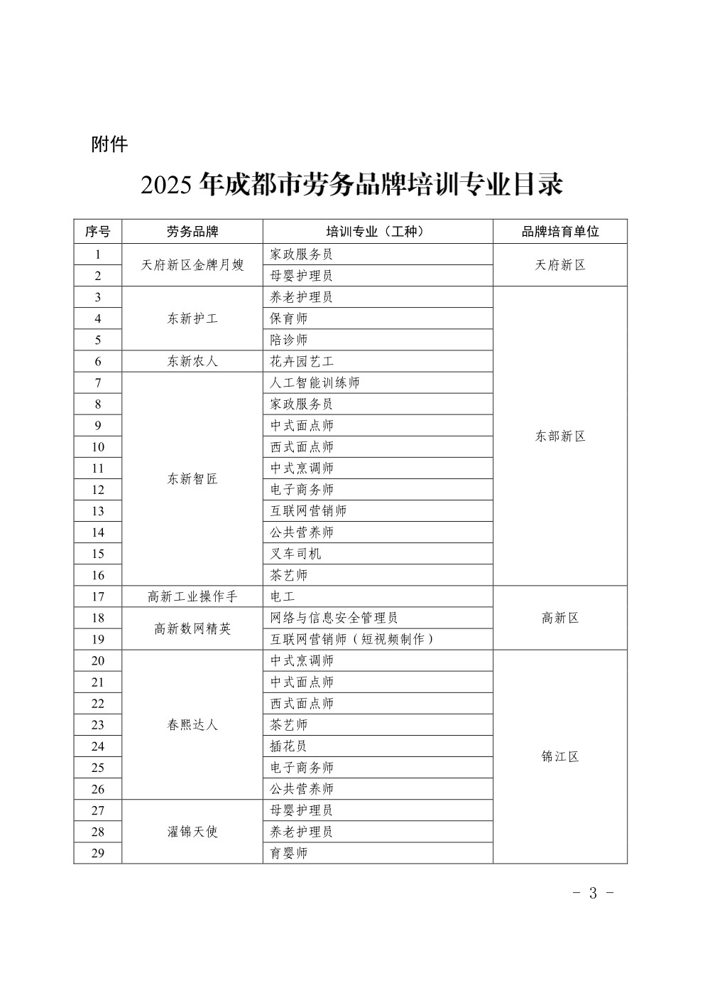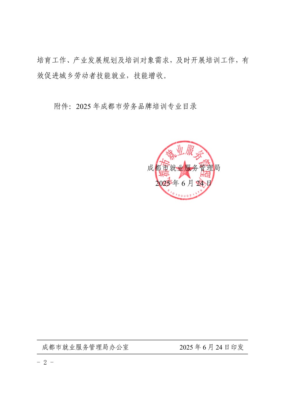 成都市就业服务管理局关于发布《2025年成都市劳务品牌培训专业目录》的通知