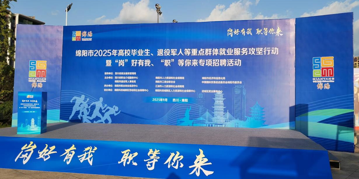 9月23日,四川省职业介绍服务中心、绵阳市人力资源和社会保障局、绵阳市退役军人事务局等单位共同主办,绵阳市就业创业促进中心、江油市人力资源和社会保障局承办的“绵阳市2025年高校毕业生、退役军人等重点群体就业服务攻坚行动暨‘岗'好有我、‘职’等你来专项招聘活动”在绵阳科技城人才公园成功举办。
