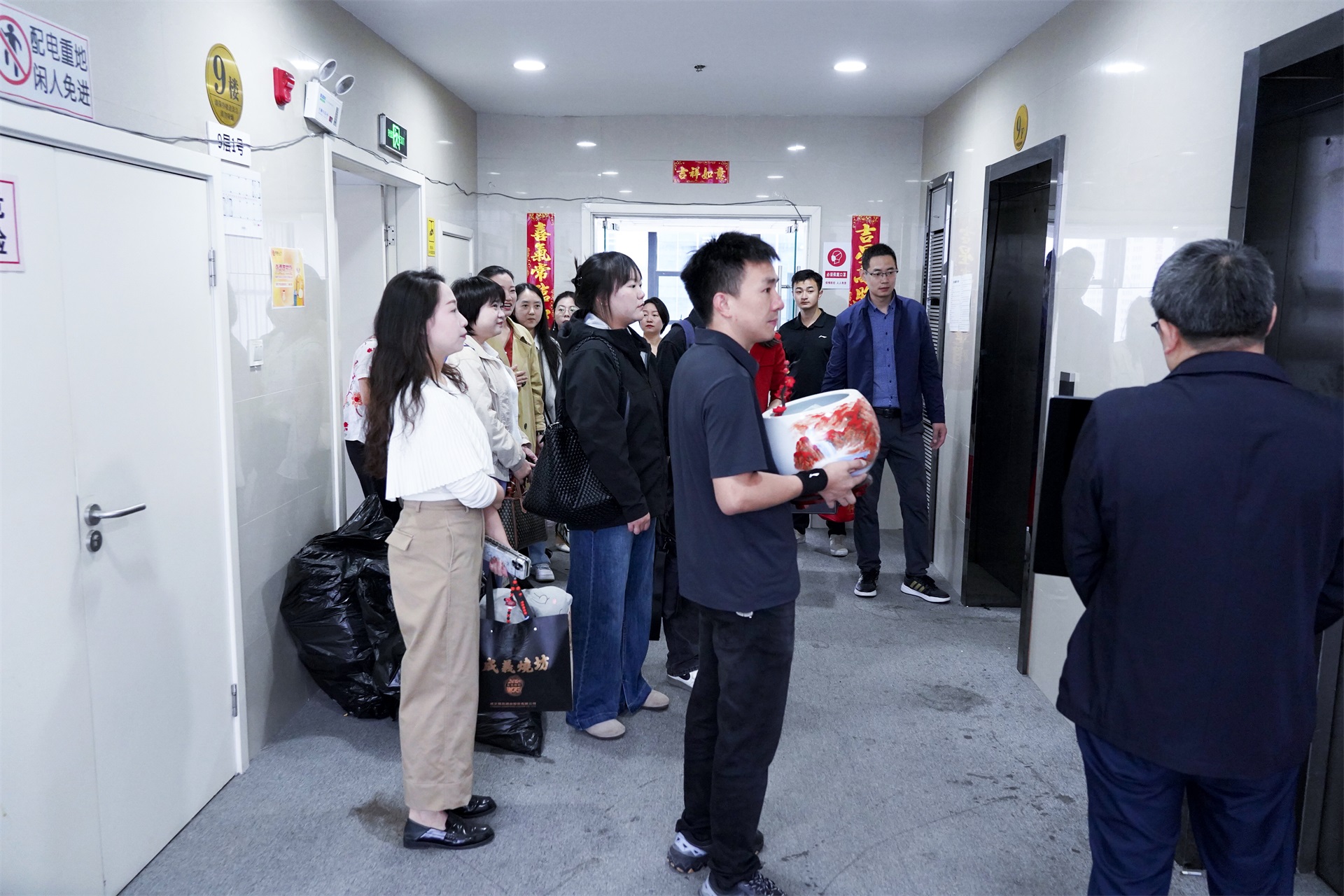 随后,职工们手持寓意吉祥的物品向单位送上祝福,温馨瞬间传递出团队的同心同德。紧接着,云峰主任向在场员工逐一派发吉祥红包,将关怀与好运送到每位员工手中。最后,全体人员在新大厅合影留念,灿烂的笑容定格了这一意义重大的时刻,乔迁仪式圆满结束。
