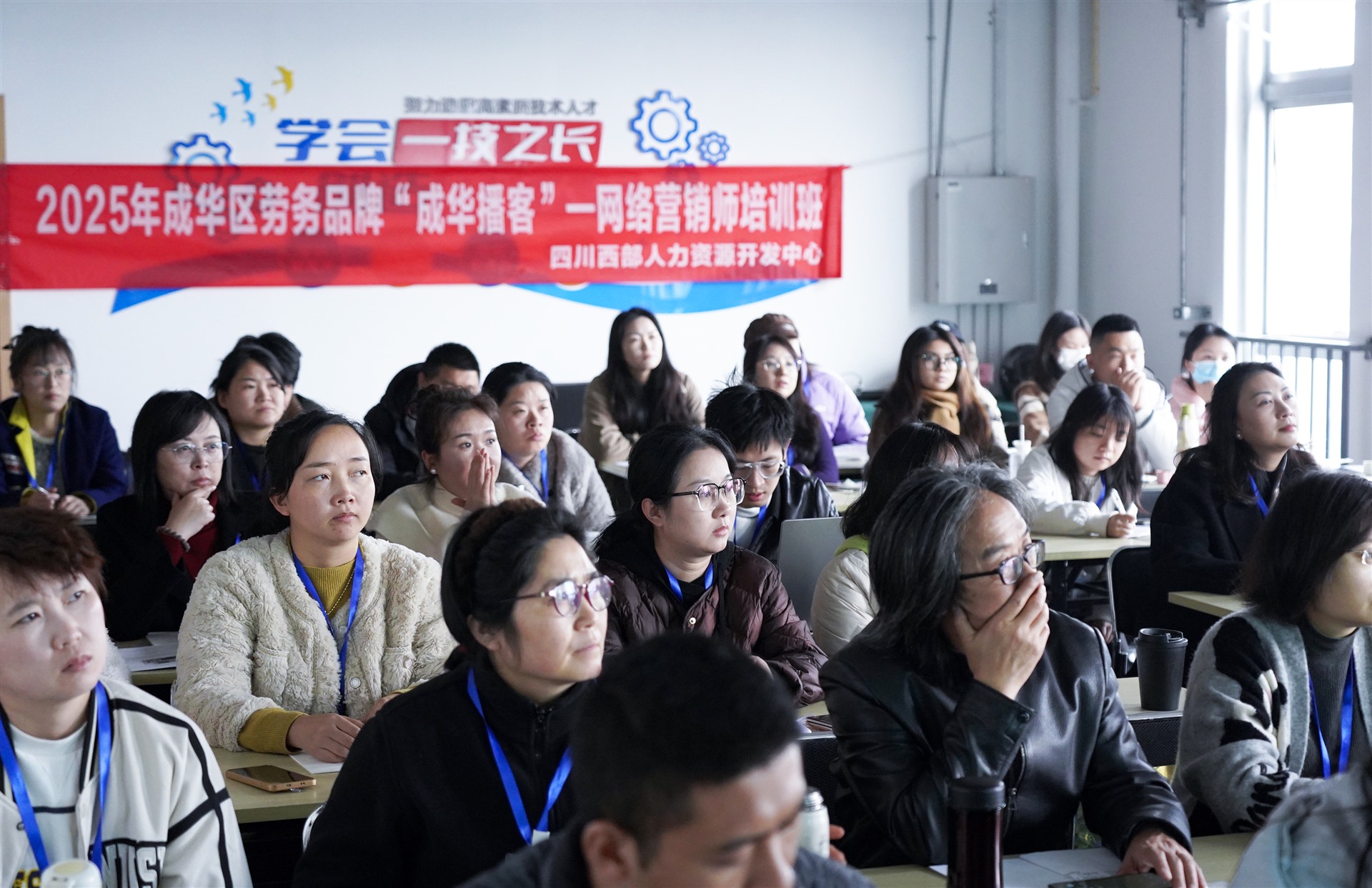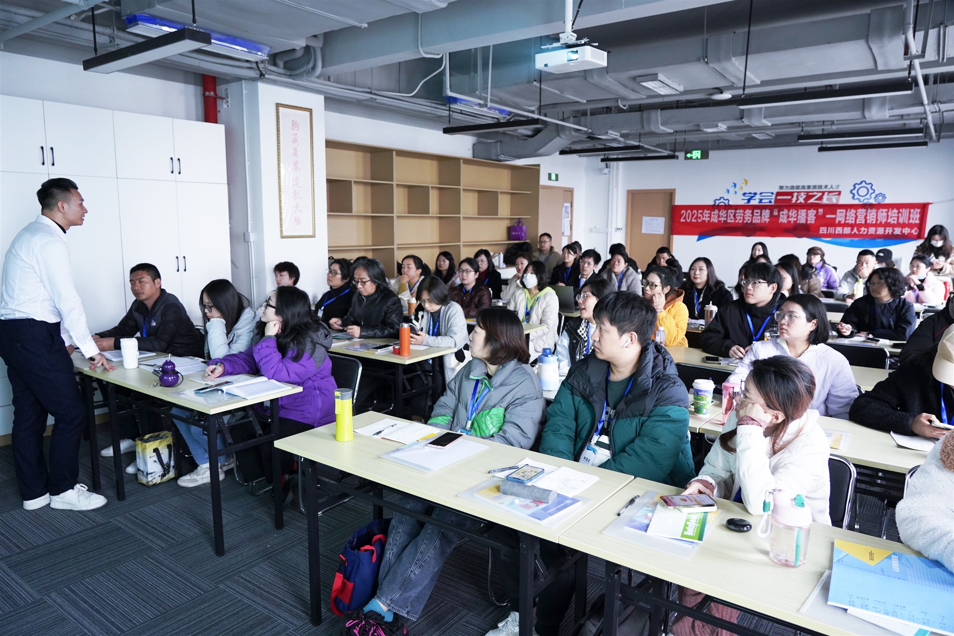 2025年11月27日-12月10日,由成华区人力资源和社会保障局主办,四川西部人力资源开发中心承办的“2025年第五期成华区劳务品牌—‘成华播客-网络营销师’培训班”在西部高技能人才培训总部顺利结业。