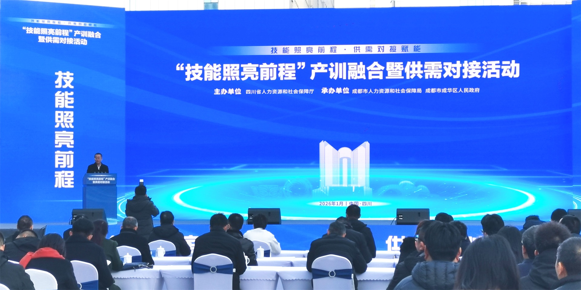 2026年1月6日,四川省“技能照亮前程”产训融合暨供需对接活动在西部高技能人才培育总部举行。活动紧扣“技能就业、技能增收、技能乐业”目标,深化“岗位需求+技能培训+技能评价+就业服务”四位一体协同机制,推动产训深度融合与供需精准匹配。作为成华区重点打造的康养产业人才培育平台,“芙蓉康养”共享实训中心凭借其贴合产业需求的培育模式,成为活动中民生就业领域的重要实践案例。