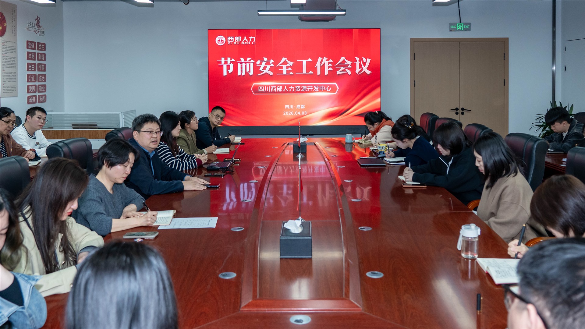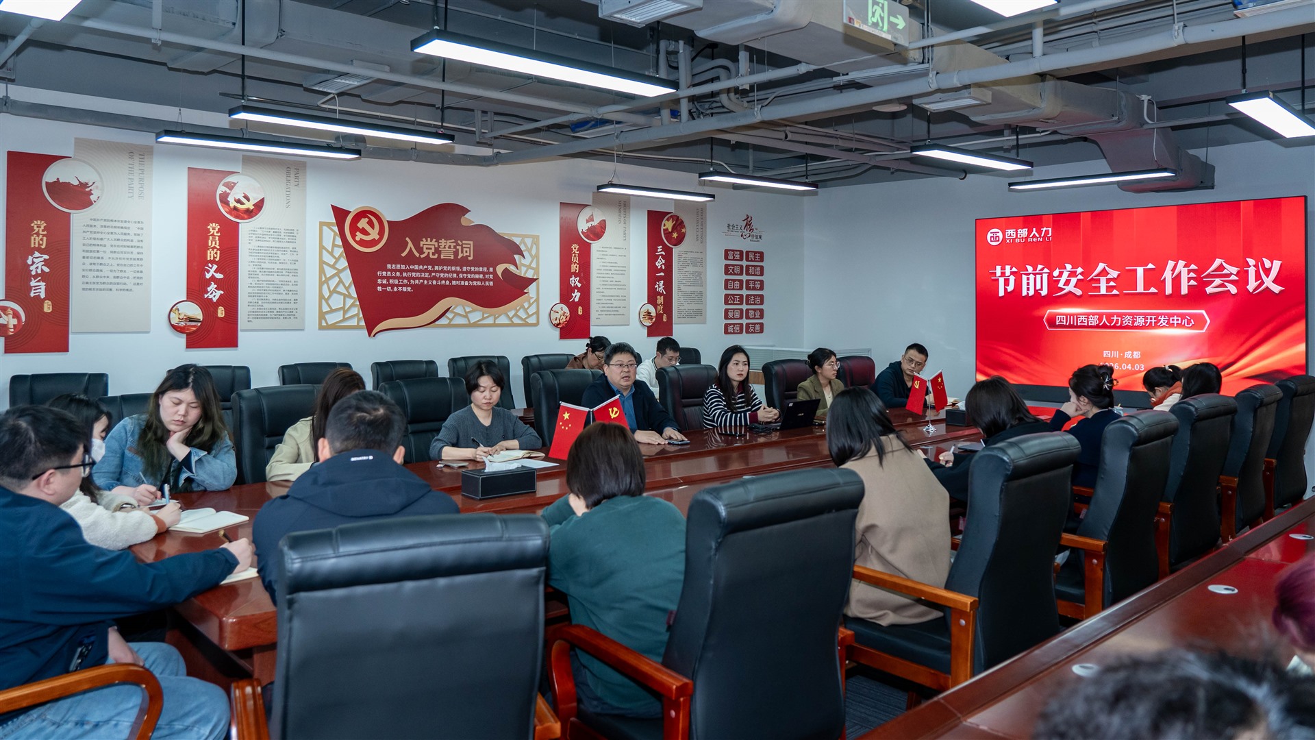 清明时节近,安全记心间。为切实做好清明节期间安全保障工作,增强全员安全责任意识,2026年4月3日,四川西部人力资源开发中心在907会议室组织召开了节前安全工作专题会议。本次会议重点围绕“假期安全保障”“重要指示”等议题进行。成都总部全体干部职工参加会议。