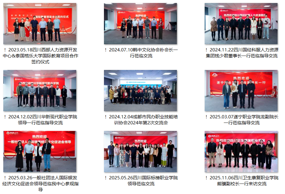 在四川省职业技能鉴定指导中心指导下开发了《小儿推拿》、《中医康复理疗》、《产后康复服务》、《婴幼儿照护》、《新媒体编辑》、《新媒体运营》、《面试礼仪指导》、《商务礼仪接待》等8项专项职业能力考核规范。