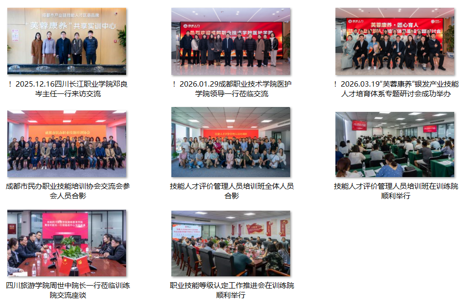 中心在康养服务领域形成完善培养评价体系,牵头建设成都市“芙蓉康养”共享实训中心;同时布局人工智能应用及全媒体运营等新职业领域培训,助力劳动者适配新业态。未来,中心将以入驻西部高技能人才培育总部为起点,打造西部地区最具公信力的培训评价机构。